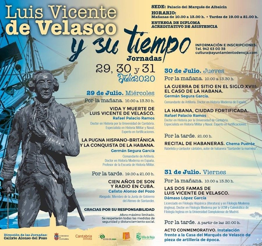 El plazo para inscribirse gratuitamente en las jornadas organizadas por el Ayuntamiento de Noja para homenajear a Luis Vicente de Velasco permanece abierto hasta este martes, 28 de julio, quedando disponibles ya únicamente las últimas plazas.