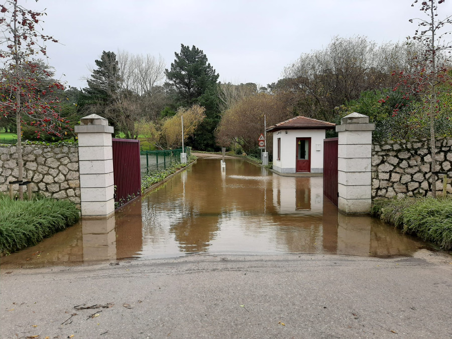 Nos referimos evidentemente a la entrada del club porque lo que es el campo si bien aguado lo soporta todo debido a su gran drenaje. Los accesos como se recuerda son zona de terreno ganado al mar al igual que la carretera luego ya es habitual que si además se produce marea alta esa parte queda negada de agua.