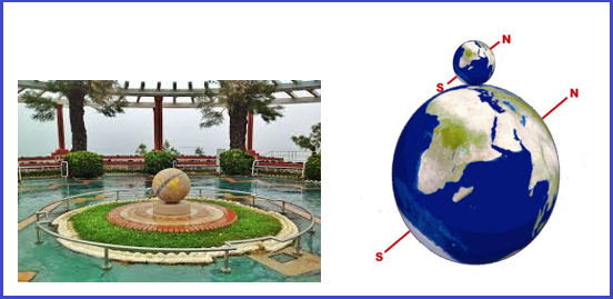 Lógicamente, la península ibérica está situada en la parte superior de la bola, haciendo que su eje polar, sea paralelo al de la tierra.