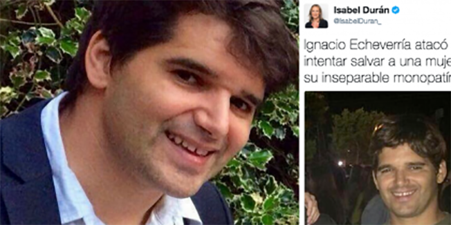 Hoy con la muerte de Ignacio Echevarría, yo me pregunto, dónde están todas esas feministas, menuda representación para las mujeres, decía que dónde están, porque las recuerdo que Ignacio murió por defender a una mujer de morir a manos de estos bárbaros, pero no van a decir nada, como tampoco lo van a decir sus colegas de los partidos de extrema izquierda, esta es la lacra y el lastre que sufrimos en España y luego se creen que pueden dar lecciones de moralidad.