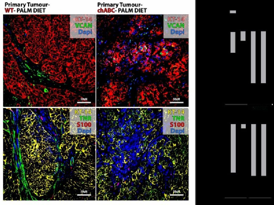 Los autores han identificado una serie de marcadores de la 'memoria' que deja la exposición al ácido palmítico en las células tumorales: un cambio que hace que las células mantengan una mayor capacidad metastática, incluso meses después de estar expuestas al ácido graso y que podría estar relacionado con una mayor capacidad de estas células tumorales para inervarse.