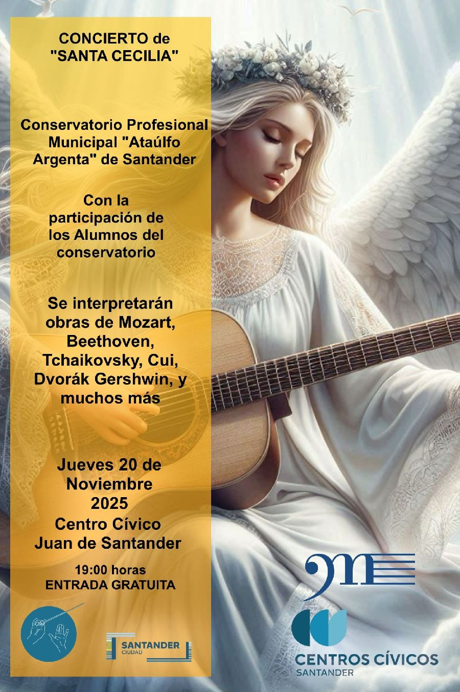 El conservatorio municipal Ataúlfo Argenta celebrará este jueves, 20 de noviembre, a partir de las 19.00 horas, el tradicional concierto de Santa Cecilia, patrona de los músicos.