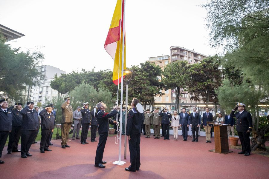 La consejera de Presidencia, Isabel Urrutia, ha asistido en la tarde de este sábado al acto de arriado de la bandera de España que, con motivo del Día de la Fiesta Nacional, ha organizado la Comandancia Naval de Santander, en los jardines de su sede.