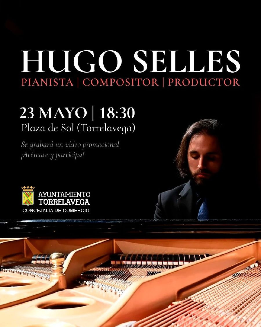 El pianista Hugo Selles (Santander, 1988) ofrecerá este jueves en la Plaza del Sol de Torrelavega, a las 18.30 horas, un concierto que servirá para la grabación de un vídeo promocional del comercio de la ciudad, con entrada gratuita.
