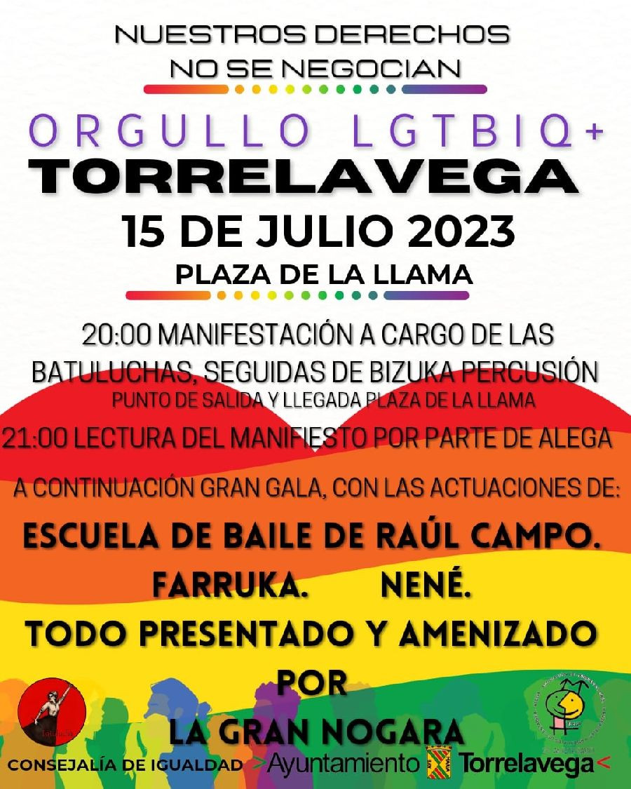 El Ayuntamiento de Torrelavega, a través de la Concejalía de Igualdad, ha organizado para mañana sábado una jornada festiva con motivo de la celebración del Orgullo LGTBIQ+, que tendrá lugar en la plaza de La Llama y bajo el lema `Nuestros derechos no se negocian`.